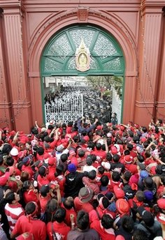泰國(guó)支持他信的“紅衫軍”“反獨(dú)裁民主聯(lián)合陣線”(UDD)日前在國(guó)會(huì)大廈外進(jìn)行示威時(shí),誤將國(guó)王普密蓬和王后詩(shī)麗吉的畫(huà)像放在一幅帶有攻擊性標(biāo)語(yǔ)的邊上,此舉倍受指責(zé),反獨(dú)裁民主聯(lián)合陣線的領(lǐng)導(dǎo)人將面臨冒犯君主罪的起訴。