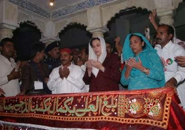 中新網10月28日電 巴基斯坦前總理貝·布托27日返回祖籍老家祭拜父親陵墓。這是她9天前返國遭炸彈襲擊以來首次公開旅行。