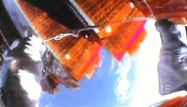 在6小時(shí)的工作中,美國宇航員帕拉辛斯基嘗試修補(bǔ)一塊在上月底在修展開時(shí)損毀的太陽能板的一道裂縫。據(jù)悉,此次修復(fù)工作是成功的,太陽能翼板將能全面張開,伸展到適當(dāng)位置。