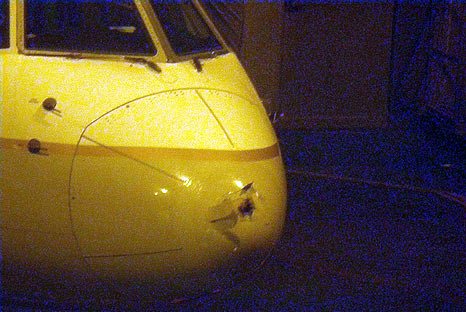 “巨爆”于起飛5分鐘后發(fā)生,機外閃過一道白光,機內(nèi)發(fā)出一下巨響,班巴當(dāng)時想:“我的天,我們的飛機要墜毀了。”數(shù)分鐘后,機師宣布客機遭閃電擊中要迫降,其后不足4分鐘便著陸。二人下機時,發(fā)現(xiàn)機頭一個很大的裂縫,他們才了解到剛才閃電的威力。