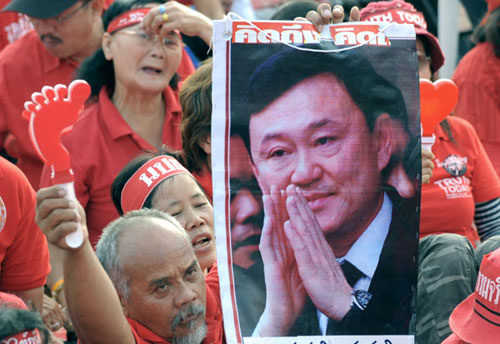 他信支持者大規(guī)模示威 要求泰國(guó)舉行新大選(圖)