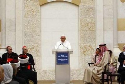 教皇其后到首都安曼最大的清真寺參觀,提到不少宗教紛爭背后受到政治操控,強調要與伊斯蘭教和諧共處。帶領教皇參觀的約旦王子加齊感謝教皇,就2006年發(fā)表傷害伊斯蘭教言論,表達遺憾。