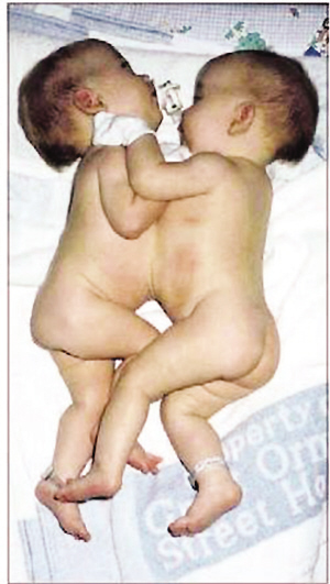 據(jù)統(tǒng)計(jì),連體雙胞胎的出生率在新生兒中僅為20萬(wàn)分之一。喬安最不愿意做的一個(gè)抉擇是,在2個(gè)寶寶中選擇一個(gè)存活,同時(shí)犧牲另一個(gè)。為此她終日祈禱。1997年4月6日,喬安在曼徹斯特市的圣瑪麗醫(yī)院經(jīng)剖腹產(chǎn)生下一對(duì)連體女?huà),取名為尼芙和?ài)法。喬安回憶稱(chēng):“看到2個(gè)小寶寶后,我的第一反應(yīng)是她們是如此正常,僅僅是‘粘連’在一起而已。她們出生時(shí)互相擁吻著,其中一個(gè)的嘴唇緊貼著另一個(gè),可愛(ài)極了!
