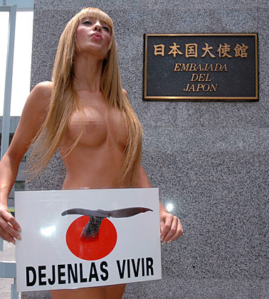 中新網(wǎng)12月3日電 綜合報(bào)道,12月1日,阿根廷模特Vanessa Carbone裸體手持“讓它們活下去”的牌子站在日本駐圣地亞哥大使館門前抗議捕鯨和非法販運(yùn)獸皮。這個(gè)抗議活動(dòng)要求智利政府下令宣布其在太平洋的領(lǐng)海為鯨魚保護(hù)區(qū)。
