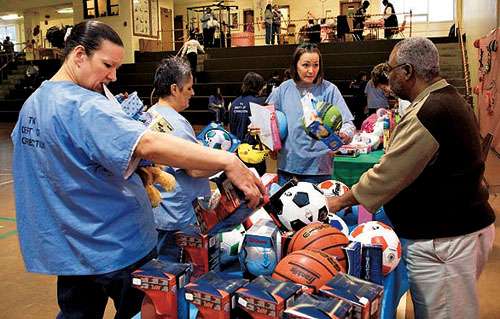 中新網12月25日電 據香港大公網報道,美國一座女子監(jiān)獄為囚犯安排了一場圣誕購物,設置了一個放滿廉價貨品的臨時“商店”,讓她們過過購物癮,獄中媽媽更可在這活動中與子女享享天倫之樂。
