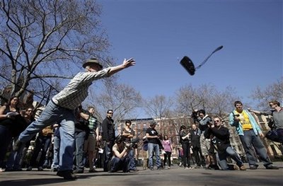 中新網(wǎng)4月2日電 失業(yè)讓人心情郁悶,紐約日前舉辦了一場(chǎng)“失業(yè)奧運(yùn)會(huì)”(Unemployment Olympics),數(shù)十名的失業(yè)人士在“你被炒魷魚了”項(xiàng)目競(jìng)跑,將滿腔憤怒化為力道,在“丟辦公室電話”競(jìng)賽中拋出好成績(jī)。