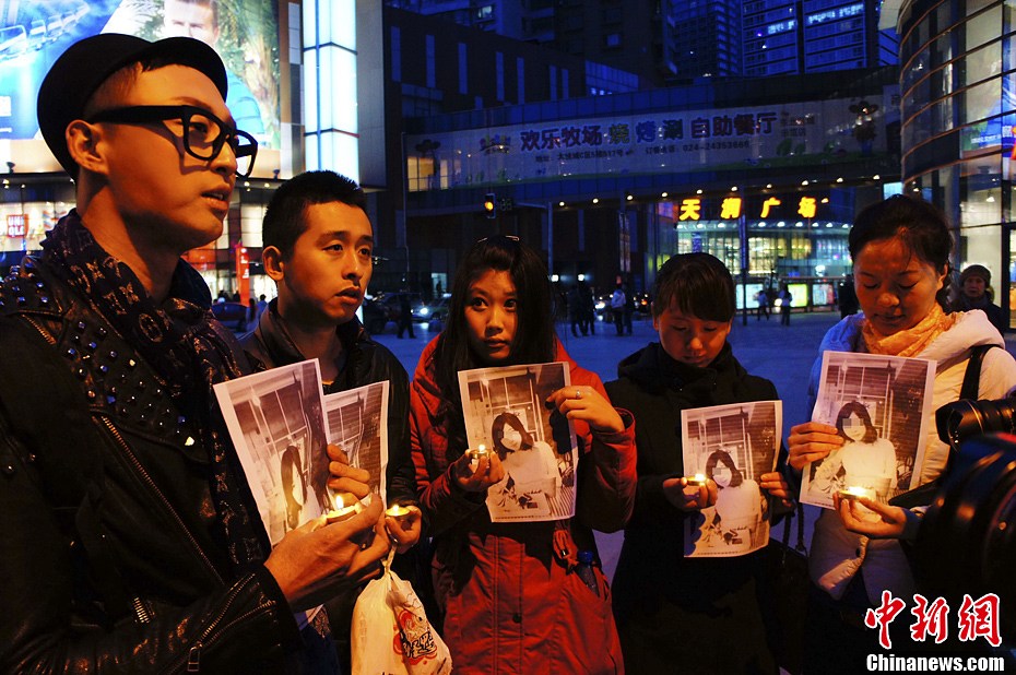 沈陽市民街頭悼念美國爆炸案遇難中國留學(xué)生
