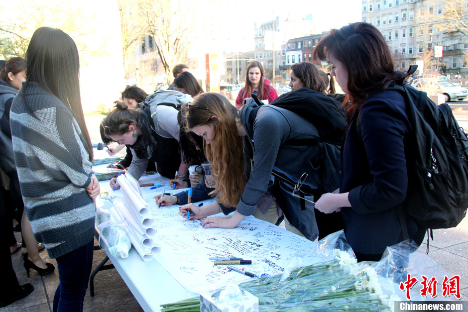 波士頓大學(xué)追悼爆炸案遇難中國女留學(xué)生呂令子