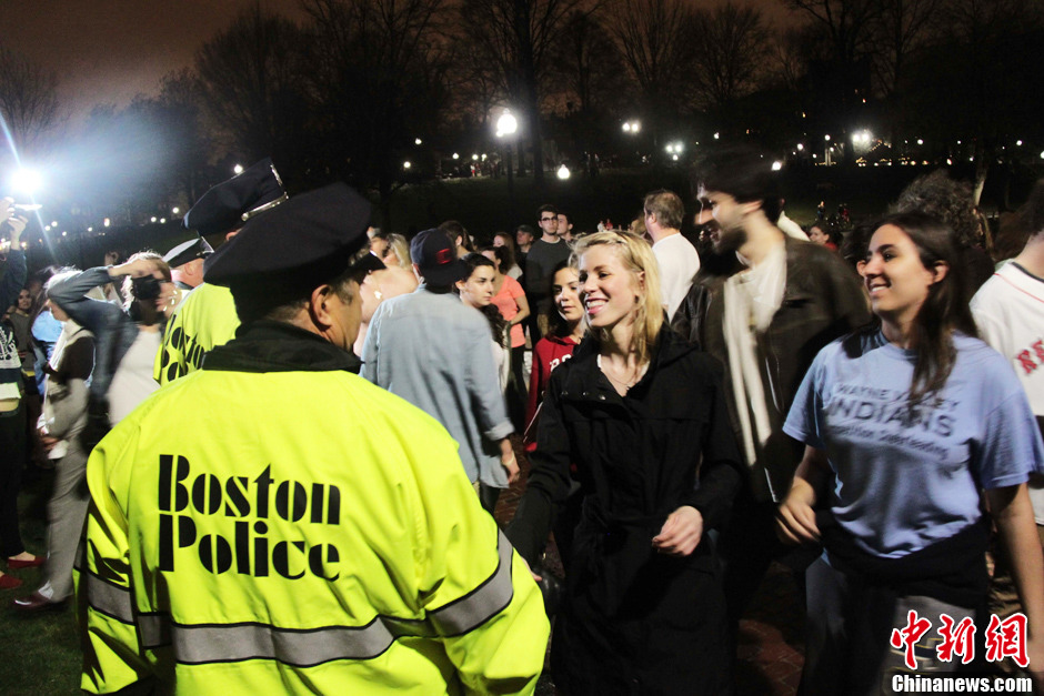 波士頓爆炸案在逃嫌疑人被抓獲 民眾歡呼慶祝