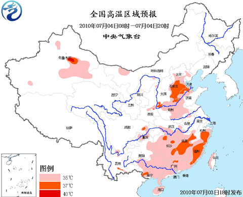 預計,4日白天,江漢南部、江南大部、華南大部、貴州東部、重慶中西部、四川盆地東北部等地有35~37℃、局地38~40℃的高溫天氣。另外,北京中南部、河北大部、山西南部、河南北部和東部、山東西部、安徽北部、陜西關(guān)中地區(qū)等地的部分地區(qū)也將有35~37℃、局地38~39℃的高溫天氣。