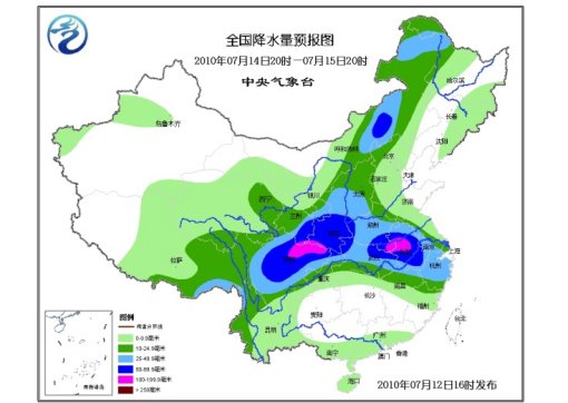 中新網(wǎng)7月12日電 據(jù)中央氣象臺(tái)網(wǎng)站消息,未來(lái)三天,青藏高原東部及其以東大部地區(qū)有一次明顯降水天氣過(guò)程,其中,黃淮西部、江漢、江淮、江南北部、四川盆地等地有大到暴雨,部分地區(qū)有大暴雨;青海東南部、內(nèi)蒙古中東部、黑龍江西北部、吉林東部、山西西南部、陜西大部、甘肅南部和東部、貴州大部、西藏東南部、云南西部和南部等地的部分地區(qū)有大雨,局地有暴雨;上述部分地區(qū)并伴有短時(shí)雷雨大風(fēng)或冰雹等強(qiáng)對(duì)流天氣。