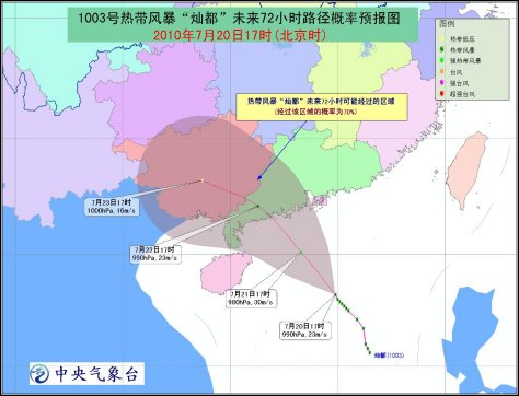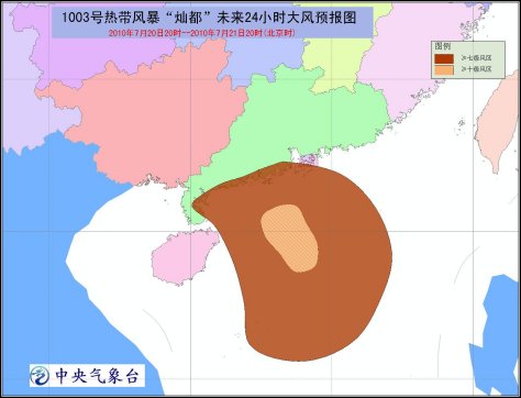 受其影響,20日晚上到21日白天,南海中部和北部及廣東沿海、海南東部沿海的風(fēng)力將有7-8級,“燦都”中心經(jīng)過的附近海面的風(fēng)力可達(dá)9-11級,部分海域和地區(qū)陣風(fēng)可達(dá)12級。廣東中部沿海地區(qū)將有大雨。