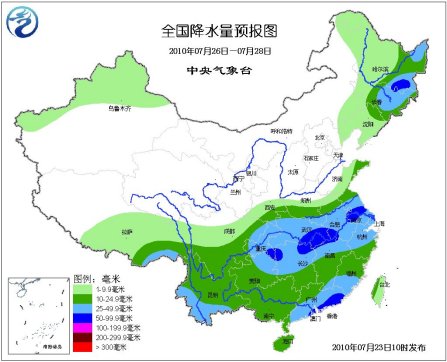 中新網(wǎng)7月23日電 據(jù)中央氣象臺預報,未來10天,西北地區(qū)東南部、東北地區(qū)東部、黃淮地區(qū)西部、江淮、漢水流域、四川盆地、江南北部、華南以及云貴高原有40-80毫米降雨,部分地區(qū)降雨量有100-150毫米,局部地區(qū)可達200毫米以上;上述大部地區(qū)降雨量與常年同期持平或偏多3-5成。另外,7月30至8月2日,中國東部將出現(xiàn)較大范圍的高溫少雨天氣。