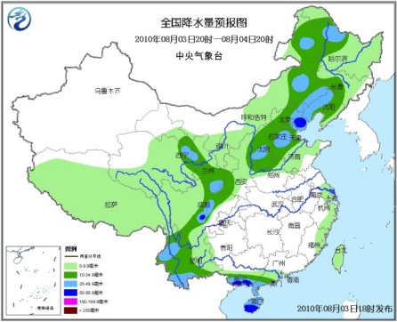3日20時(shí)至4日20時(shí),西藏大部、青海中東部和南部、西北地區(qū)中東部、內(nèi)蒙古中東部、東北大部、華北、黃淮東部和北部、江蘇南部、浙江東部、福建東部、廣東南部、廣西南部、海南、四川盆地西部、云南、臺(tái)灣等地有小到中雨或陣雨,其中,內(nèi)蒙古東北部和東部偏南地區(qū)、黑龍江西北部和中部偏南地區(qū)、吉林中西部、遼寧西部和中北部、河北東北部和中南部、天津、山東北部、四川盆地西部、甘肅南部、云南西部和南部、廣西南部沿海、雷州半島及海南等地有大雨,部分地區(qū)有暴雨,上述局地并伴有短時(shí)雷雨大風(fēng)等強(qiáng)對(duì)流天氣。