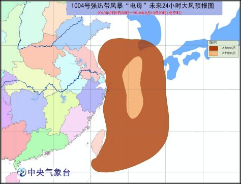 預(yù)計,“電母”將以每小時25公里左右的速度向偏北方向移動,強(qiáng)度還將有所增強(qiáng);10日下午以后“電母”將轉(zhuǎn)向北偏東方向移動,并逐漸向韓國南部沿?拷