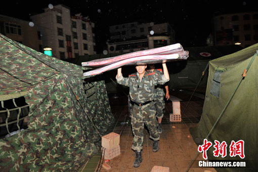 中新網(wǎng)舟曲8月11日電(記者 唐偉杰 劉賢)晚上8點半左右,在數(shù)十分鐘的密集電閃雷鳴后,舟曲災區(qū)開始降雨,目前雨勢較小。據(jù)氣象部門預報,今晚舟曲雷陣雨轉(zhuǎn)中雨,明天預計繼續(xù)有中雨。