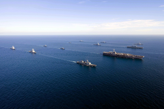 二是炮艦主義——“你不聽話,我就展示肌肉;再不聽話,我就動武,使用拳頭!弊罱(jīng)典的注腳是美國總統(tǒng)今年5月剛剛批準的《2010年美國海軍建設概念》,把美國的所謂“海上利益”描述得淋漓盡致,宣稱美國海軍要鍛造六大核心能力:一是前沿存在;二是威懾;三是海上安全;四是海上控制;五是力量投送;六是人道主義救援。多么冠冕堂皇啊!但是,所謂的“前沿存在”,就是美國的炮艦可以到世界的各個角落橫行霸道,把美國的安全邊界前推到別人的家門口,什么黃海、南海,都是美國的安全邊界。所謂的“威懾”,就是你不聽我的話,我就揍你。所謂的“海上安全”,就是要保證美國的炮艦神圣不可侵犯,只有我的安全,豈管他人不安全?所謂的“海上控制”,奉行的仍是“誰控制了海上咽喉要道,誰就控制了海洋;誰控制了海洋,誰就控制了全世界”的邏輯。所謂的“力量投送”,明眼人一看,就知道它是指戰(zhàn)爭力量的投送,絕對不會是和平力量的投送。所謂的“人道主義救援”,就是只對美國人和美國的盟友實施“人道”,而對他人實施“霸道”。美國的行為方式表明,它仍然在堅持冷戰(zhàn)思維,仍然在奉行炮艦政策。這種炮艦主義是以叢林游戲規(guī)則為哲學基礎的,其基本原理就是以強凌弱、以大欺小。具有諷刺意味的是,迷信武力,只憑炮艦說話,于是就有了深陷于伊拉克戰(zhàn)爭和阿富汗戰(zhàn)爭的尷尬。