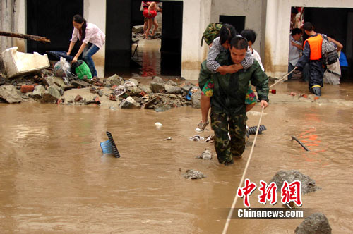 14日中午12點(diǎn)30分,阿壩支隊(duì)廖軍支隊(duì)長(zhǎng)率郭興武參謀長(zhǎng)等救援官兵從馬爾康驅(qū)車到達(dá)汶川徹底關(guān)大橋?yàn)?zāi)害現(xiàn)場(chǎng),通過(guò)實(shí)地查看和詢問(wèn)當(dāng)?shù)厝罕姷弥恒氪ㄉ称宏P(guān)村上銀杏組處泥石流阻斷河道形成堰塞湖,將國(guó)道213線淹沒200余米,最深處達(dá)4米。確認(rèn)車輛、人員短時(shí)間尚無(wú)通行的可能后,根據(jù)查看情形當(dāng)機(jī)立斷,立即組織疏散轉(zhuǎn)移附近群眾,廖支隊(duì)長(zhǎng)率領(lǐng)官兵爬山淌水,一戶一戶的走,一個(gè)工地一個(gè)工地說(shuō),使附近260余名群眾和工人安全轉(zhuǎn)移到地勢(shì)較高的安全地段。