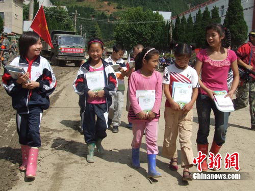 中新網(wǎng)隴南8月26日電 (侯志雄 陳艷艷)記者今日從甘肅隴南市委宣傳部獲悉,隴南暴洪災(zāi)害受災(zāi)地區(qū)為確保學(xué)校秋季按時(shí)開(kāi)學(xué),對(duì)災(zāi)害中受損的校舍進(jìn)行排查評(píng)估和維修加固,并按時(shí)買(mǎi)來(lái)了新課本等教學(xué)用品,保證了學(xué)校按期開(kāi)學(xué)。
