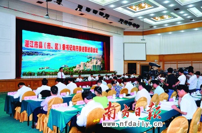 如果這幾天到湛江,詢問當(dāng)?shù)厥忻窈驼賳T,當(dāng)前最關(guān)注的事件是什么,他們一定會說是“縣(市、區(qū))委書記述職述廉會議”。昨日上午,該會議在湛江海濱賓館國際會議中心召開,湛江10位縣(市、區(qū))委書記先后上臺,向會場上69位評委———市委委員、候補(bǔ)委員,市紀(jì)委委員———匯報,會議全程被網(wǎng)絡(luò)、電視直播。與此同時,湛江市官網(wǎng)“碧海銀沙”上,網(wǎng)民“頂”、“批”、“拍磚”不斷。為學(xué)習(xí)湛江的民主經(jīng)驗,外省8個地級市派出了觀摩團(tuán)與會。