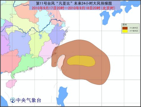 受其影響,17日20時至18日20時,臺灣以東洋面、東海南部、臺灣東部及北部沿海、福建中北部沿海、臺灣海峽將有7-9級大風,部分海域風力可達10-12級,“凡亞比”中心經(jīng)過的附近海面的風力有13-16級;臺灣東部將有中到大雨,局部地區(qū)有暴雨。