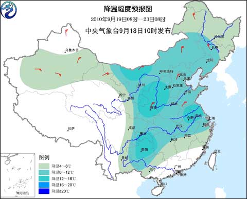 中新網(wǎng)9月19日電 據(jù)中國(guó)天氣網(wǎng)消息,19日至22日,今年入秋以來(lái)最強(qiáng)冷空氣將影響我國(guó)。中央氣象臺(tái)預(yù)報(bào)稱,大部地區(qū)氣溫將下降4~8℃,中東部部分地區(qū)降溫幅度可達(dá)10~14℃,局部可超過15℃;北方大部伴有4~6級(jí)偏北風(fēng)。