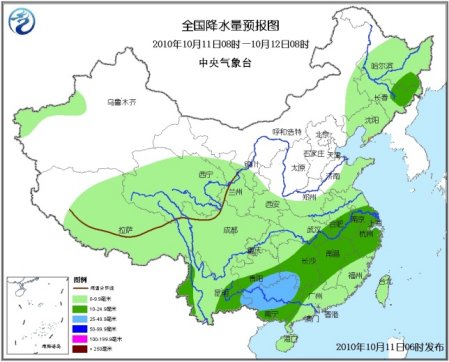 中新網(wǎng)10月11日電 據(jù)中央氣象臺預(yù)報,未來三天,新疆西部、西藏中東部、青海大部、內(nèi)蒙古東部、東北大部、川西高原北部等地有小到中雨(雪)或雨夾雪,西北地區(qū)東南部、黃淮南部、江淮、江漢、江南、華南、西南等地有小到中雨或陣雨,其中,貴州大部、廣西中北部、湖南北部、湖北南部、重慶東南部、浙江中北部等地有中到大雨,上述地區(qū)局部并伴有短時雷雨大風(fēng)等強(qiáng)對流天氣。