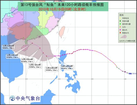 今年第13號超強臺風“鲇魚”已于10月18日20時在菲律賓呂宋島北部減弱為強臺風,18日22時前后進入南海東部海面。19日05時強臺風“鲇魚”的中心位于南海東部海面上,就是北緯16.8度,東經(jīng)118.8度,中心附近最大風力有15級(50米/秒),中心最低氣壓為945百帕。