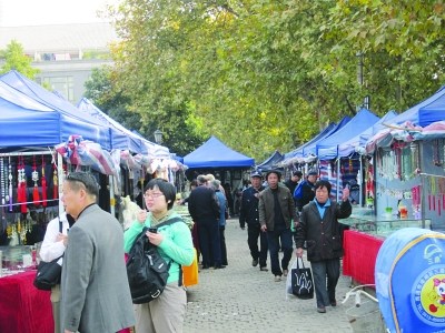 昨天上午,記者來到山巷廣場,發(fā)現(xiàn)這里帳篷如林,各種奇石玉器琳瑯滿目,眾多市民參觀購物。一位來自遼寧的王姓商販告訴記者,是一位姓劉的人主動發(fā)短信組織他們來此擺攤設(shè)點進行玉器展銷的,每個攤位交納1000元。記者在一位遼寧女?dāng)傊鞯氖謾C上看到該短信:“鎮(zhèn)江首屆奇石玉器展在大西路山巷廣場舉辦,緊鄰富人區(qū),展費1200元”。攤主們說,他們已經(jīng)將每個攤位一至兩千元的租金交給了劉某,劉某說罰款已交給城管了,讓他們放心大膽擺攤。