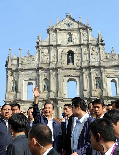 14日,溫家寶在澳門特別行政區(qū)行政長(zhǎng)官崔世安的陪同下,先后參觀澳門大炮臺(tái)、澳門博物館、大三巴牌坊,考察了澳門生產(chǎn)力暨科技轉(zhuǎn)移中心、澳門工聯(lián)北區(qū)綜合服務(wù)中心、仁伯爵綜合醫(yī)院、澳門大學(xué)等機(jī)構(gòu),看望澳門廣大市民,和大家真情互動(dòng),深切了解澳門歷史和經(jīng)濟(jì)、社會(huì)發(fā)展情況。他還走訪市民家庭,了解澳門普通居民的生活現(xiàn)狀。
