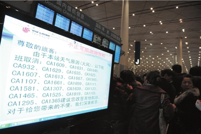 昨天下午,大量乘客滯留在候機(jī)廳內(nèi),延誤通知不斷重播,多數(shù)乘客表示不滿。乘客孫女士氣憤地說,他們一行20人從北京飛往上海,原定上午9點(diǎn)半起飛,已經(jīng)在此處等候了8個(gè)小時(shí),“剛一問,對(duì)方說可能要明天起飛”,此話引起眾人不滿,多人要求機(jī)場(chǎng)方解決食宿問題,但對(duì)方始終稱“需要協(xié)調(diào)”。