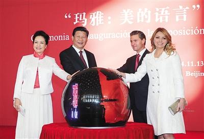 據(jù)新華社電 習近平13日同培尼亞共同出席在國家博物館舉行的“瑪雅:美的語言”文化展開幕式。