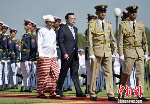 中新網內比都11月14日電 (記者 郭金超)緬甸總統(tǒng)吳登盛14日在內比都總統(tǒng)府前廣場舉行隆重儀式,歡迎中國國務院總理李克強對緬甸進行正式訪問。這是李克強就任總理以來首次訪問緬甸。