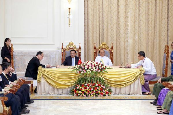 11月14日,李克強(qiáng)總理與緬甸總統(tǒng)吳登盛見(jiàn)證兩國(guó)簽署多份協(xié)議。