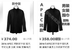 APEC會(huì)議上首次亮相的“特色中式服裝”,引起了社會(huì)公眾的關(guān)注,一些網(wǎng)店的掌柜迅速“嗅到”商機(jī),紛紛推出同款服裝(如圖)。昨天,服裝面料供應(yīng)商表示只提供私人定制,其他商家無權(quán)使用同款面料,網(wǎng)上熱銷的同款服裝均為仿制。