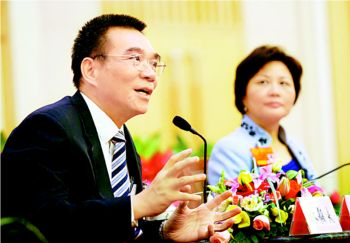 林毅夫夫婦分別來自全國人大北京代表團和臺灣代表團,上午9時,林毅夫在前,陳云英在后,準時出現(xiàn)在中外記者面前。他們面帶微笑,向記者頻頻點頭致意。