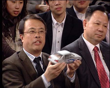 余卓平:新能源汽車的開發(fā)工作現(xiàn)在應(yīng)該來講還很好地進行,20輛將來今年要上奧運會的車,應(yīng)該講是他離開以后我們在加班加點做的。另外一個,這個團隊起來以后,應(yīng)該說整個團隊有個作風,萬部長有的時候也給人家講,有的時候看電視《亮劍》里面講一支隊伍,首任長官應(yīng)該他會樹起這個隊伍的核心靈魂,他的工作作風等等這個東西,跟他的首任指揮官是相關(guān)的。