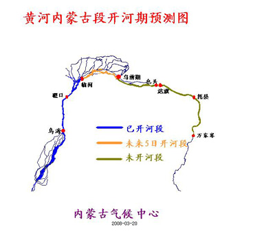 根據(jù)未來(lái)5天黃河內(nèi)蒙古段沿線天氣預(yù)報(bào),3月20日—21日氣溫略有回升, 3月22日 —23日,將有一次大風(fēng)、沙塵及降溫天氣過(guò)程,氣溫下降6~8℃。受氣溫變化的影響,未來(lái)5天巴彥淖爾市臨河至烏拉特前旗段將逐步開(kāi)河。