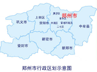【區(qū)劃】轄區(qū)6個、縣級市5個、縣1個。分別是:中原區(qū)、二七區(qū)、金水區(qū)、管城回族區(qū)、惠濟區(qū)、上街區(qū)、滎陽市、鞏義市、登封市、新密市、新鄭市、中牟縣