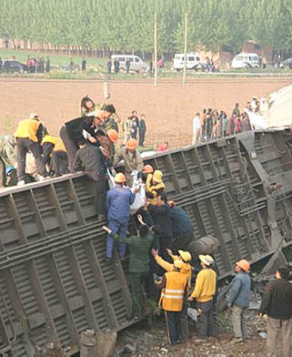 中新網(wǎng)4月28日電 今天凌晨4點(diǎn)41分,北京開往青島的T195次旅客列車運(yùn)行至山東省境內(nèi)膠濟(jì)鐵路周村至王村間脫線,與煙臺(tái)至徐州的5034次客車相撞。事故發(fā)生后,中國(guó)鐵道部和山東省委、省政府已迅速啟動(dòng)緊急預(yù)案。鐵道部部長(zhǎng)劉志軍、山東省委書記姜異康、省長(zhǎng)姜大明等已趕赴事故現(xiàn)場(chǎng)。