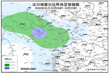 汶川地震災區(qū)降雨量預報圖(20日08時-20日20時)