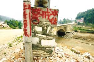 昨日,記者沿綿陽市通口河溯江而上,直奔唐家山堰塞湖方向。從江油到北川的公路上,路旁的碎石與收拾細軟遷移的災民形成一道特別的景象。村莊的田地里,綠油油的莊稼已經(jīng)成熟,但是位于北川香泉鄉(xiāng)黃江村的村民們卻無心收獲,因為洪水的威脅正在來臨。村民王紅梅站在海拔900多米的山上,只能遙望山下自己不到一畝的田地。這個村莊是幸運的,離北川縣城有一個多小時車程的這里屬于石灰?guī)r地區(qū),地震只是震塌了一小部分房子,沒有造成多少人員傷亡。然而,地震帶來的次生災害正逐步威脅著村里1200多人的生命,村民也開始把家中重要的物品轉(zhuǎn)移到更高的山上。