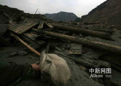 我知道這是徒勞,大地震已經(jīng)過了九天了?墒,畢竟,畢竟,這里曾經(jīng)是一個(gè)村子。很難想象,半座大山怎樣在崩塌時(shí),把這個(gè)村莊從山坡摧毀到谷底。