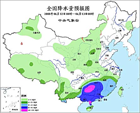 中新網(wǎng)6月12日電 據(jù)問(wèn)天網(wǎng)消息,中央氣象臺(tái)6月12日06時(shí)發(fā)布未來(lái)三天天氣預(yù)報(bào):預(yù)計(jì),今明兩天,地震災(zāi)區(qū)無(wú)明顯降雨,以多云天氣為主,有時(shí)有小陣雨,氣溫較高,濕度較大,其中,四川成都、綿陽(yáng)、德陽(yáng)、廣元以及甘肅文縣、陜西略陽(yáng)、寧強(qiáng)等地日最高氣溫可達(dá)30~32℃,帳篷內(nèi)溫度36~40℃,四川汶川、茂縣、理縣日最高氣溫可達(dá)28~30℃,帳篷內(nèi)溫度32~35℃,請(qǐng)注意采取防暑降溫措施。14~15日,地震災(zāi)區(qū)將有一次中雨、局地大雨的天氣過(guò)程,降雨量一般為10~25毫米,局部地區(qū)雨量可達(dá)30~40毫米。