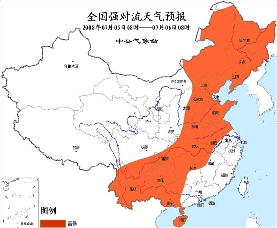 中新網7月5日電 據問天網消息:中央氣象臺5日6時繼續(xù)發(fā)布強對流天氣預報。