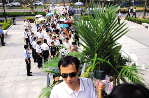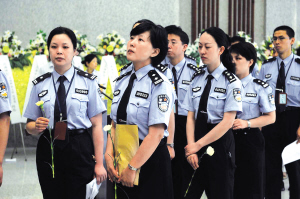 龍華殯儀館工作人員張雁琳對記者說,為了布置好追悼大會(huì)的6個(gè)分會(huì)場,她和十幾名同事今天早晨6時(shí)就趕到了殯儀館,已經(jīng)忙了4個(gè)多小時(shí)!斑@些民警平時(shí)為了維護(hù)社會(huì)治安,奉獻(xiàn)了很多。為他們?nèi)松淖詈笠徽舅托凶鳇c(diǎn)事,表達(dá)我們對他們的一片敬意。”(雍和 江躍中 潘高峰 鄒瑞玥)
