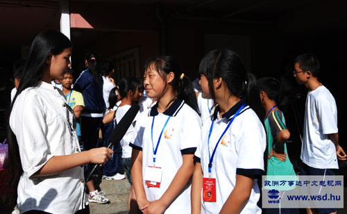 《歐洲萬事達(dá)報(bào)》十三歲的特約小記者陳藝捷采訪了地震災(zāi)區(qū)的學(xué)生劉一姍與趙宇,他們告訴記者,我們來到這里很快樂,剛開始不是太習(xí)慣,因?yàn)槲覀兯拇◥鄢岳苯,菜以辣為主,這里的匈餐很少吃到辣的菜,在飲食方面開始有些不適應(yīng),現(xiàn)在好多了慢慢適應(yīng)了。(文/宋聚芳 攝影/陳雷)