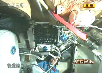 中新網(wǎng)9月26日電 北京時(shí)間9月26日10點(diǎn)20分,“神舟”七號(hào)航天員翟志剛和劉伯明開始在飛船軌道艙進(jìn)行軌道艙狀態(tài)檢查和艙外航天服的組裝與測(cè)試等工作。據(jù)中央電視臺(tái)消息,目前,“飛天”艙外航天服已組裝完畢。