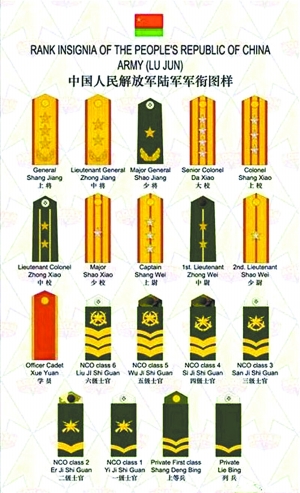 圖:中國人民解放軍陸軍現(xiàn)行軍銜標(biāo)志圖樣。