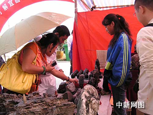 中新網(wǎng)宜昌10月18日電(記者 劉濤) 18日,在三峽奇石資源豐富的三峽工程所在地湖北宜昌市,來自全國(guó)各地的數(shù)千件天然奇石與宜昌市民“親密接觸”,成為當(dāng)?shù)財(cái)?shù)千市民周末生活的一部分。宜昌市歷史上最大規(guī)模的“奇石展”已經(jīng)吸引全國(guó)各地?cái)?shù)百家參展商、百余家精品奇石展館攜精品參加此次奇石盛會(huì)。